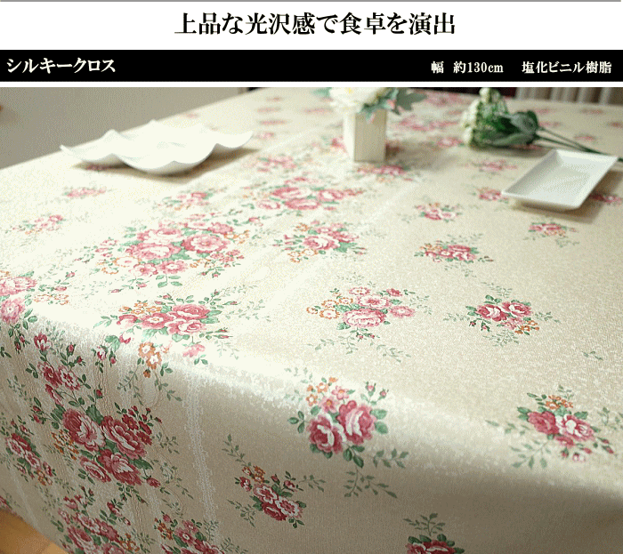 さっと拭けるテーブルクロス使いやすいビニル製 幅130cmで10cm単位でカットしますセンターローズ