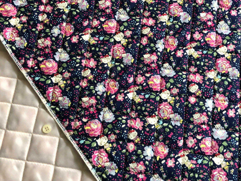 LIBERTYリバティプリント・ハローキティ×リバティ国産タナローン生地キルティング(裏ポリエステルキルト生地)<Felicite Hello Kitty>(フェリシテ ハローキティ)【裏地:ピンクベージュ】QUILT-DC27904-J12B