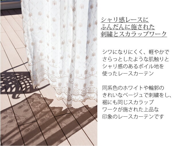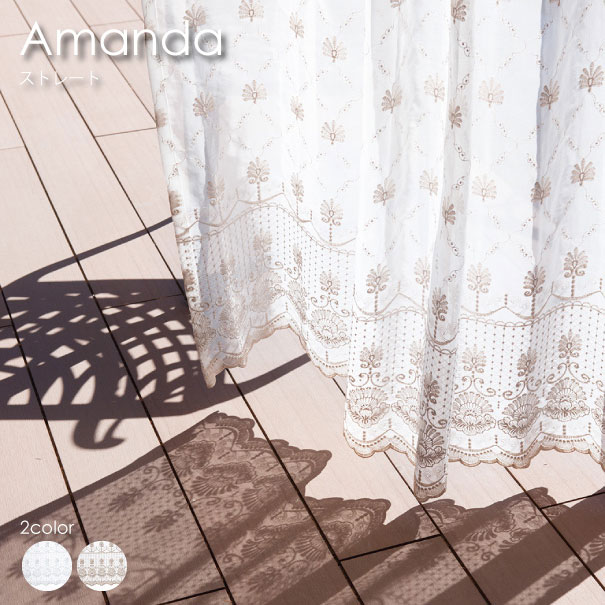 【ストレート】WAVE SALAD Amanda レースカーテン 色 カラー オーダーカーテン カーテン オーダーメイド おしゃれ 北欧 かわいい モダン 西海岸 ヴィンテージ 刺繍 スカラップ 洗える 全2色