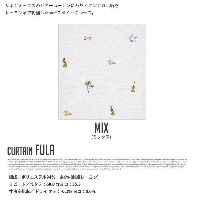 【1.5倍ヒダ】WAVE SALAD Fula オーダーカーテン カーテン オーダーメイド 麻 ハワイアン おしゃれ 北欧 かわいい モダン 西海岸 ヴィンテージ