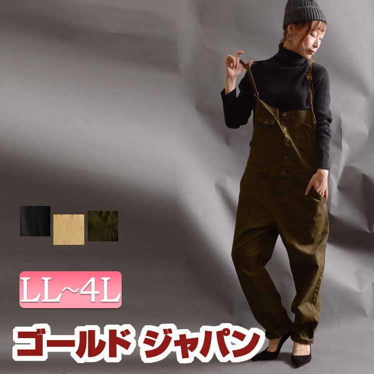 大きいサイズ レディース ボトムス パンツ ロング ロングパンツ サロペットパンツ オールインワン ロング丈パンツ サロペット つなぎ 無地 シンプル 長ずぼん 春 秋 春服 秋服 LL 2L 3L 4L XL XXL LLサイズ 13号 15号 17号 ブラック 黒 black ベージュ カーキ¬
